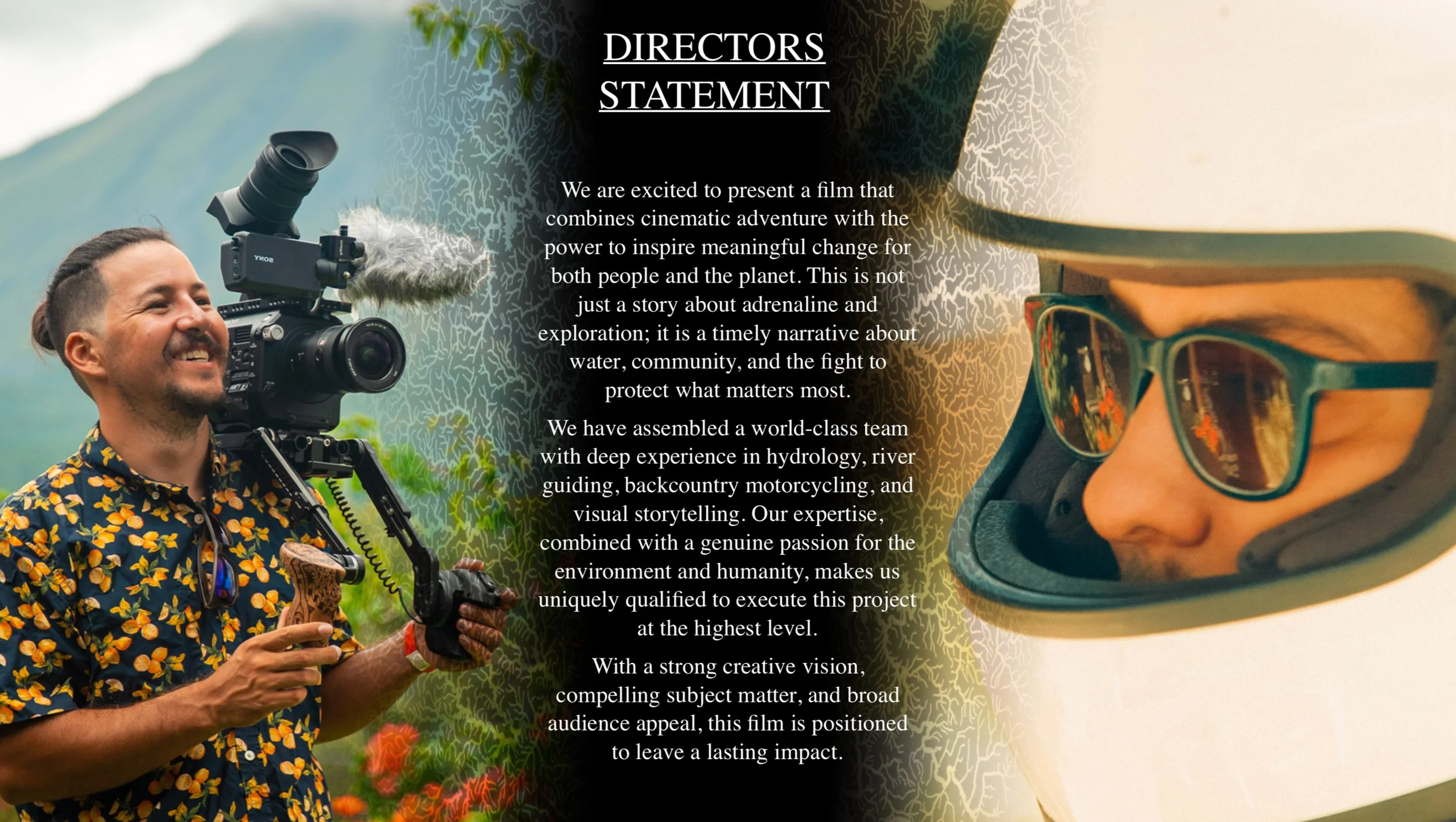 Both living nomadically in vans, Michael and Drew crossed paths in 2022 and immediately recognized a shared vision: to use film as a force for environmental awareness. Their first project together, Spring Run: The Last Stand for California’s Wild Salmon, marked the beginning of a powerful collaboration. With Rios del Alma, they aim even higher—blending science, storytelling, and soul to protect the last free-flowing rivers of Latin America and the communities that depend on them.
